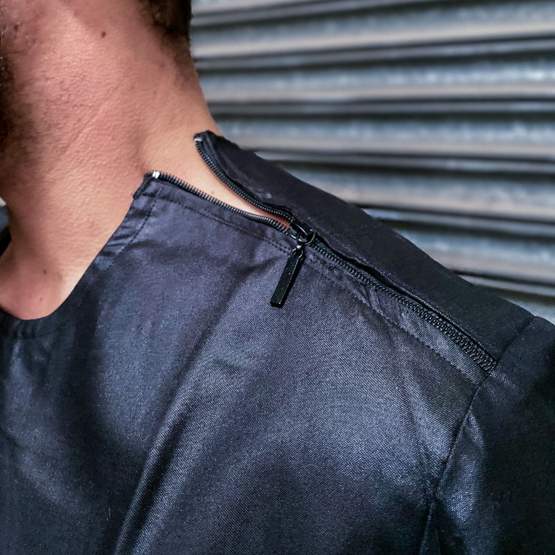 während der weltweit berühmte Ghana Dashiki mit seinem einzigartigen seltenen Stoff & Muster besticht, bietet der New Style Dashiki viele Spielereien wie einen Reißverschluss an der Schulter, wechselnder Ornament Schmuck am Ärmel je nach Stylewunsch, oder den glänzenden Stoff „J.Mahama“, den viele auf den ersten Blick mit Leder verwechseln und sich interessiert wundern. �