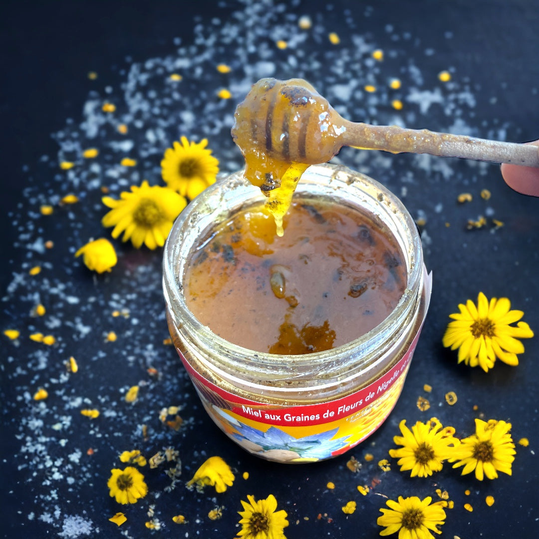 100% reiner belgischer Berghonig aus der Montagne mit Ingwer, Schwarzkümmel und Bienenwaben